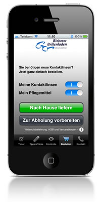 Über den eingebauten Push Dienst werden Sie von Ihrem iPhone rechtzeitig an den Wechsel Ihrer Kontaktlinsen erinnert.